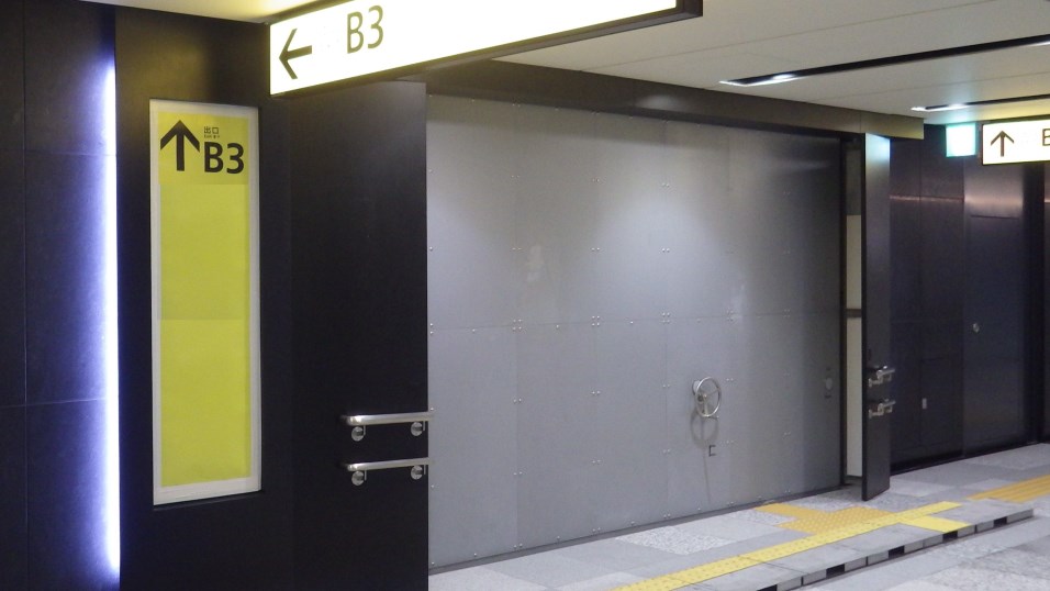 限られた開閉スペースでも閉鎖できる防水扉を設置したい