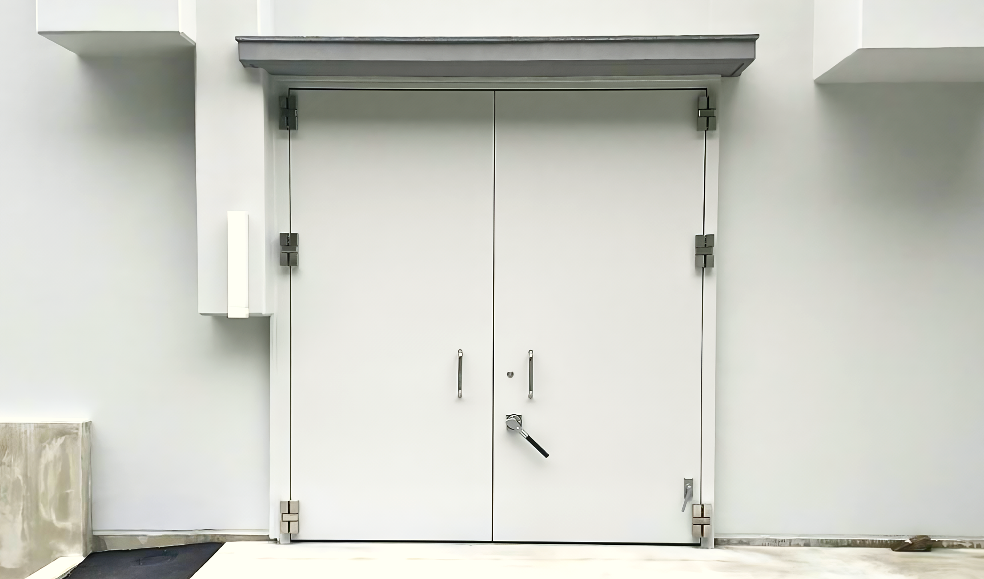 防水ドアは室内外どちらからでも操作可能で、扉が枠に密着し室内側への漏水を抑えます。