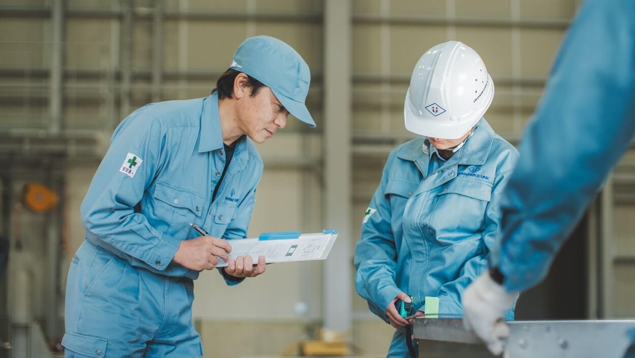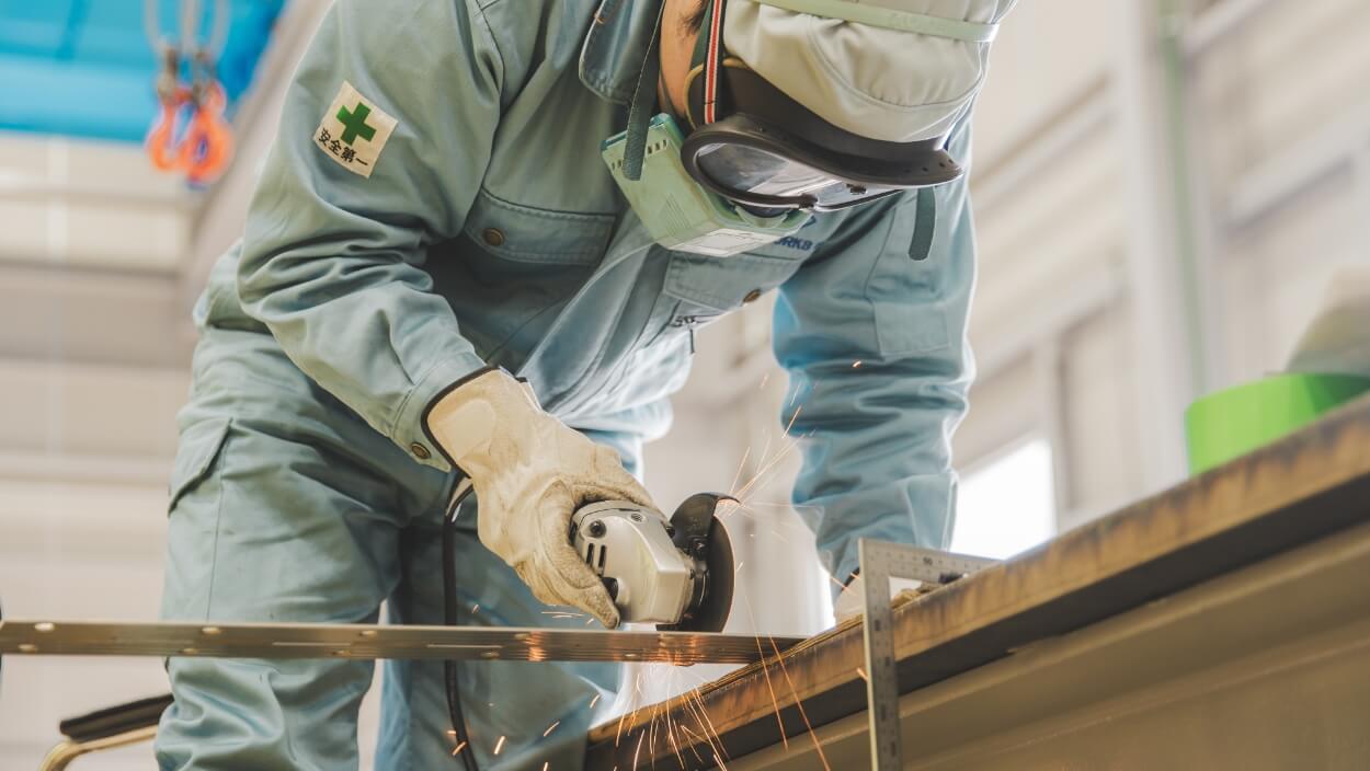 製造過程では、図面を読む、組み立て、溶接、ひずみ取り、部品組込、 仕上げ、仮組など幅広いスキルを必要とします。